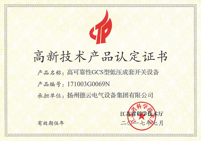 GCS型高新技術(shù)產(chǎn)品證書(shū)