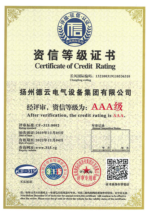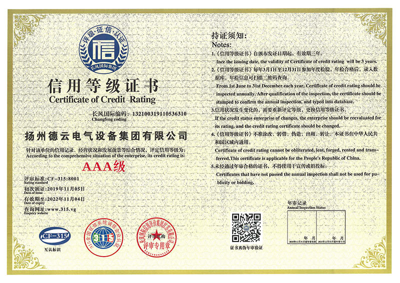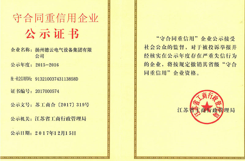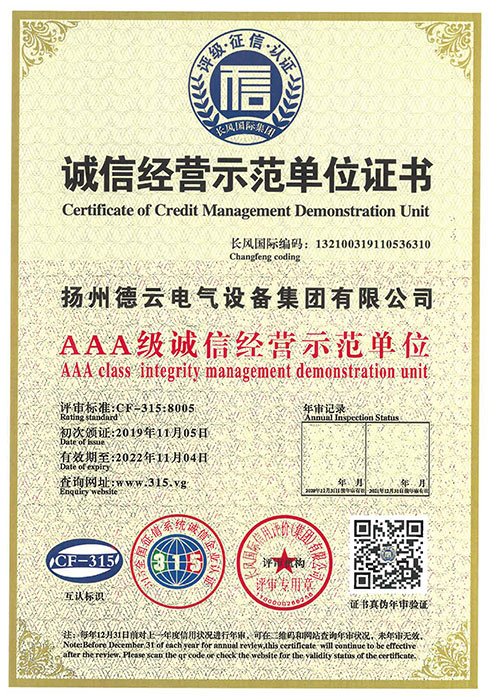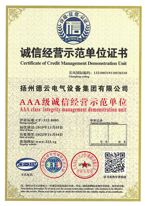 AAA級(jí)誠(chéng)信經(jīng)營(yíng)示范單位